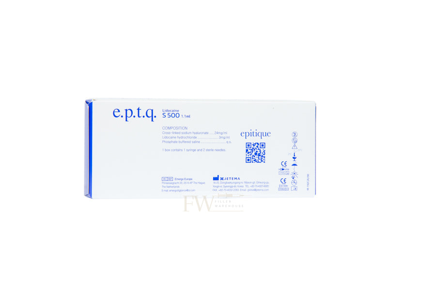 EPTQ S500 with Lidocaine is a cross-linked Hyaluronic Acid Dermal Filler used for Cheek Augmentation, Jawline Augmentation, Chin Augmentation, Facial Contouring, Non-Surgical Rhinoplasty.
